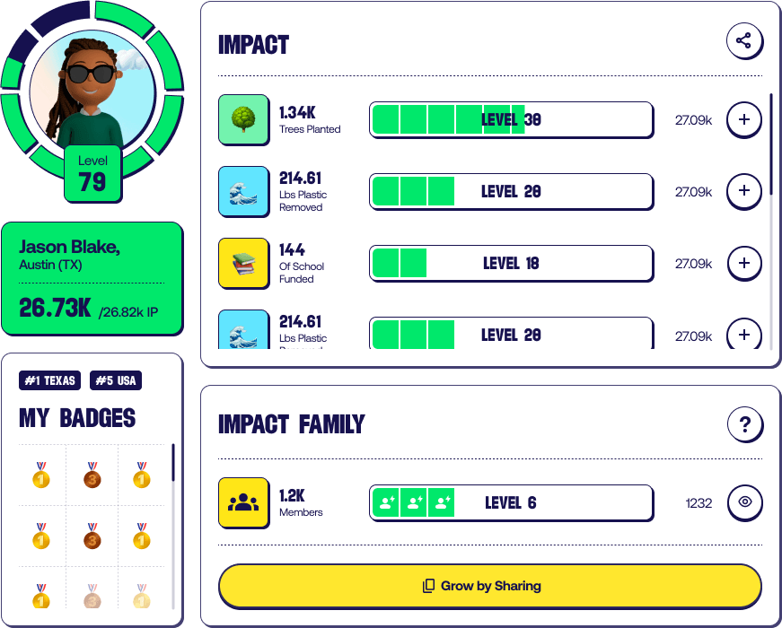 Watch your impact stats grow and celebrate with your team